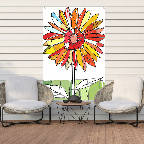 Kleurrijke abstracte illustratie van zonnebloem tuinposter