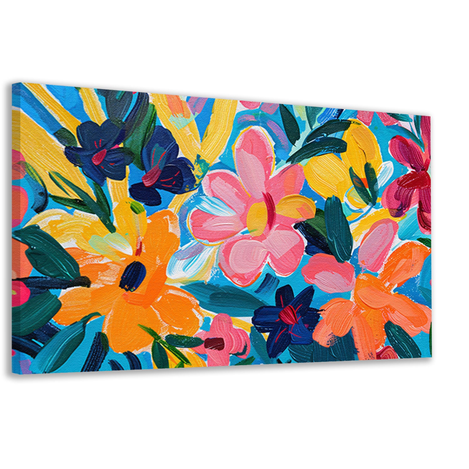 Kleurrijke abstracte impressie van bloemen en bladeren canvas