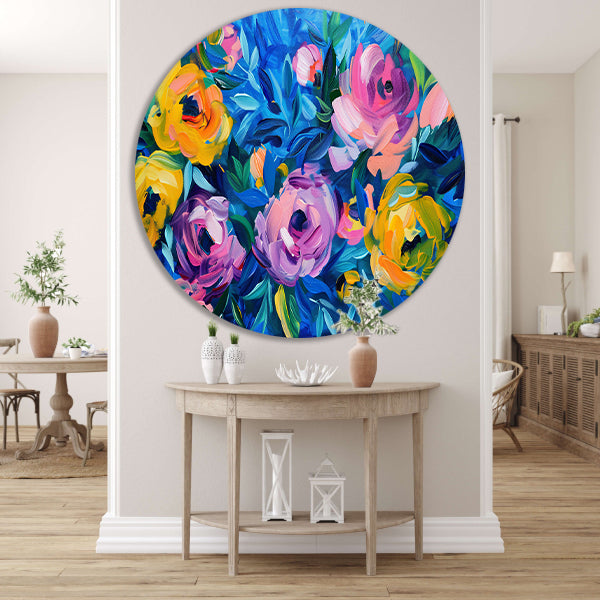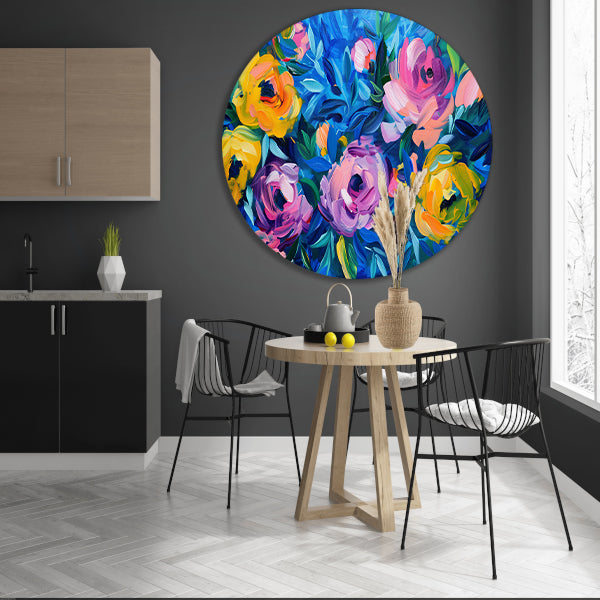 Kleurrijke Abstracte Impressie van Bloemen in Kunst aluminium muurcirkel
