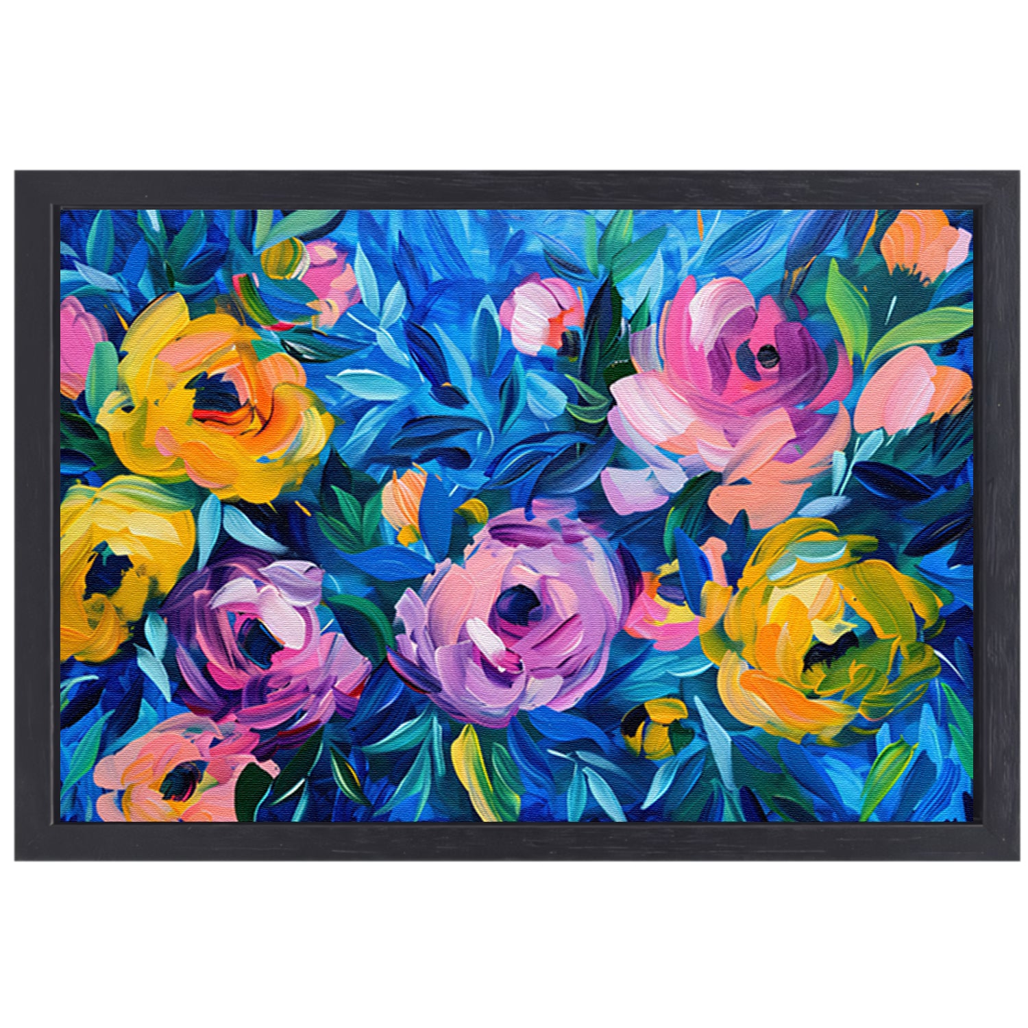 Kleurrijke Abstracte Impressie van Bloemen in Kunst canvas met baklijst