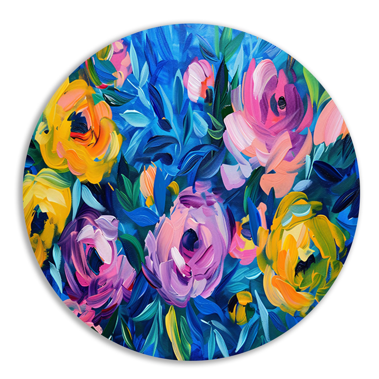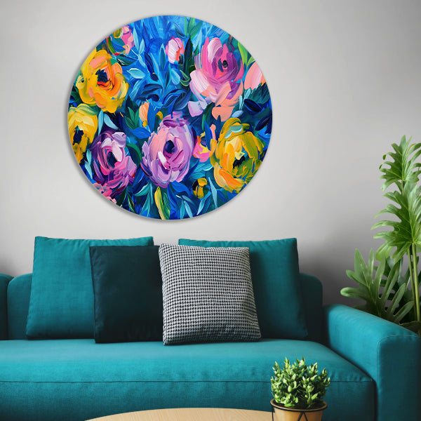 Kleurrijke Abstracte Impressie van Bloemen in Kunst forex muurcirkel