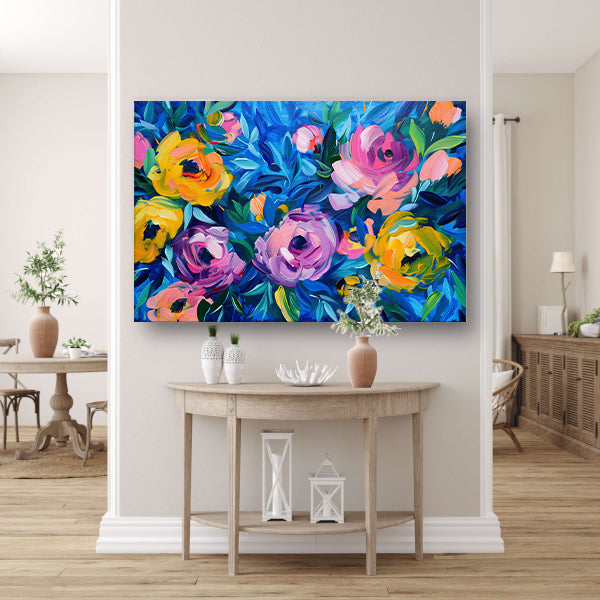 Ideaal voor de woonkamer, slaapkamer, kantoor of elke andere ruimte die wat extra leven kan gebruiken. Deze "Kleurrijke Abstracte Impressie van Bloemen in Kunst" poster is een perfecte aanvulling op jouw stijl en geeft je interieur een moderne en artistieke uitstraling.