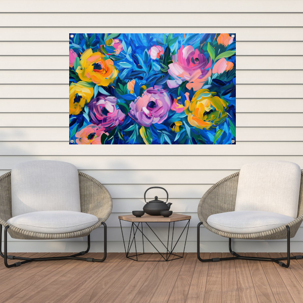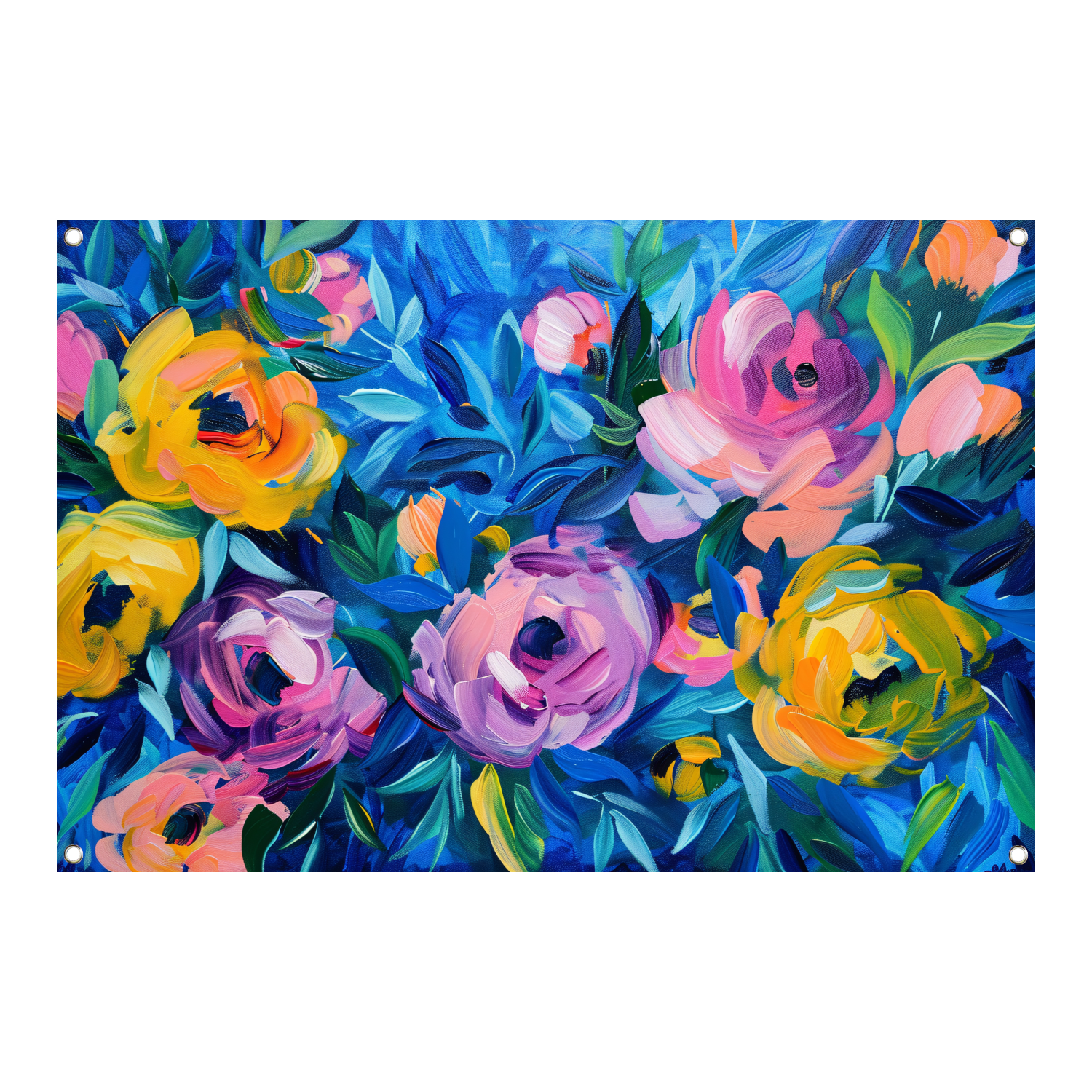 Kleurrijke Abstracte Impressie van Bloemen in Kunst tuinposter