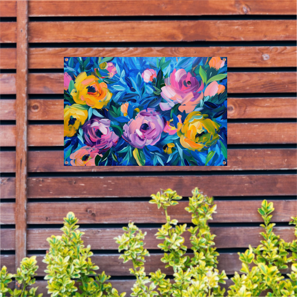 Onze tuinposters zijn UV- en waterbestendig, waardoor ze bestand zijn tegen zon en regen en hun kleuren langdurig mooi blijven. Alle tuinposters van De Muurdecoratie zijn voorzien van ringen in de hoeken, zodat je ze eenvoudig kunt ophangen. Let op: onze tuinposters worden niet met ophangsysteem geleverd.