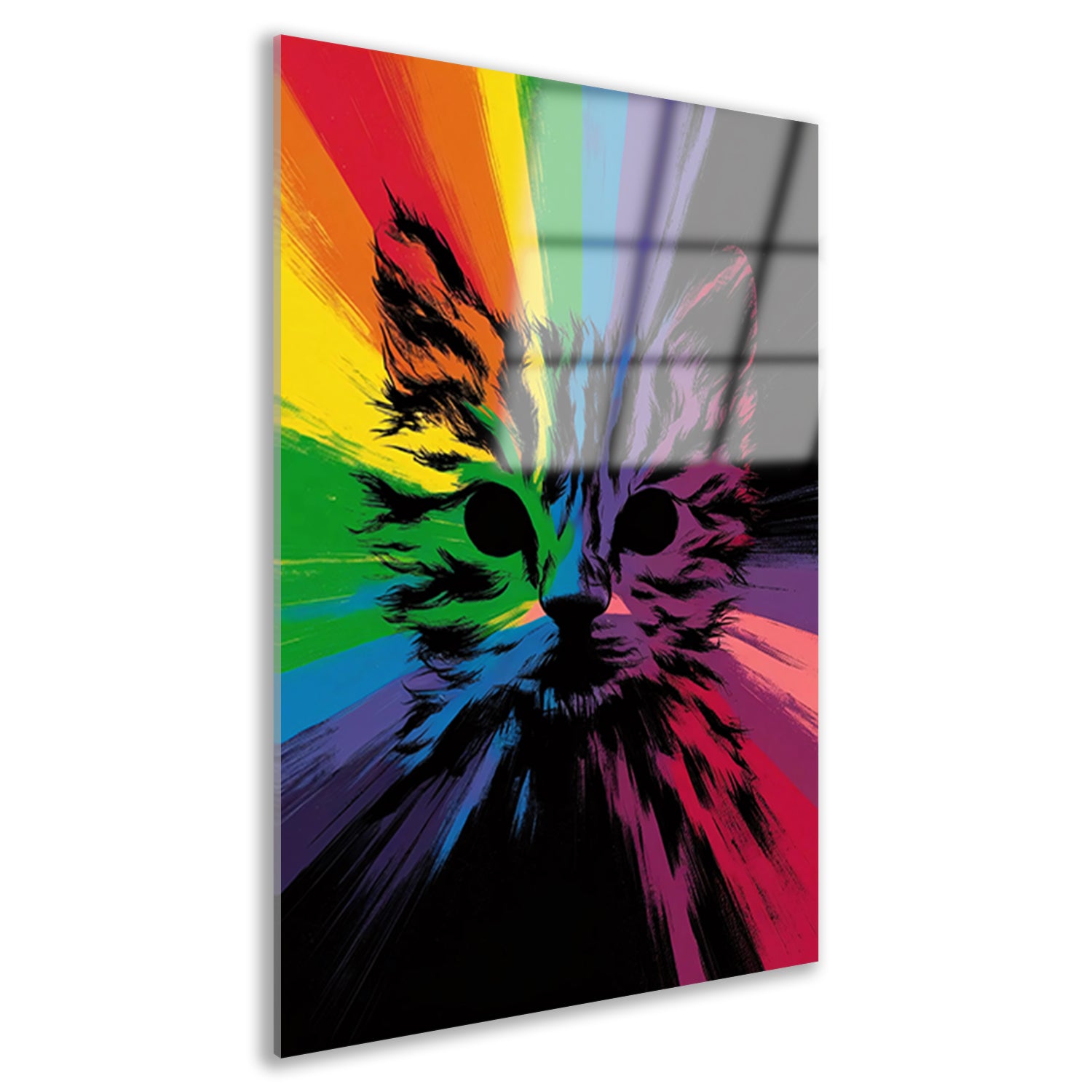 Kleurrijke abstracte kat in regenboogkleuren acrylglas