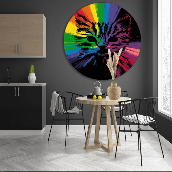 Kleurrijke abstracte kat in regenboogkleuren forex muurcirkel