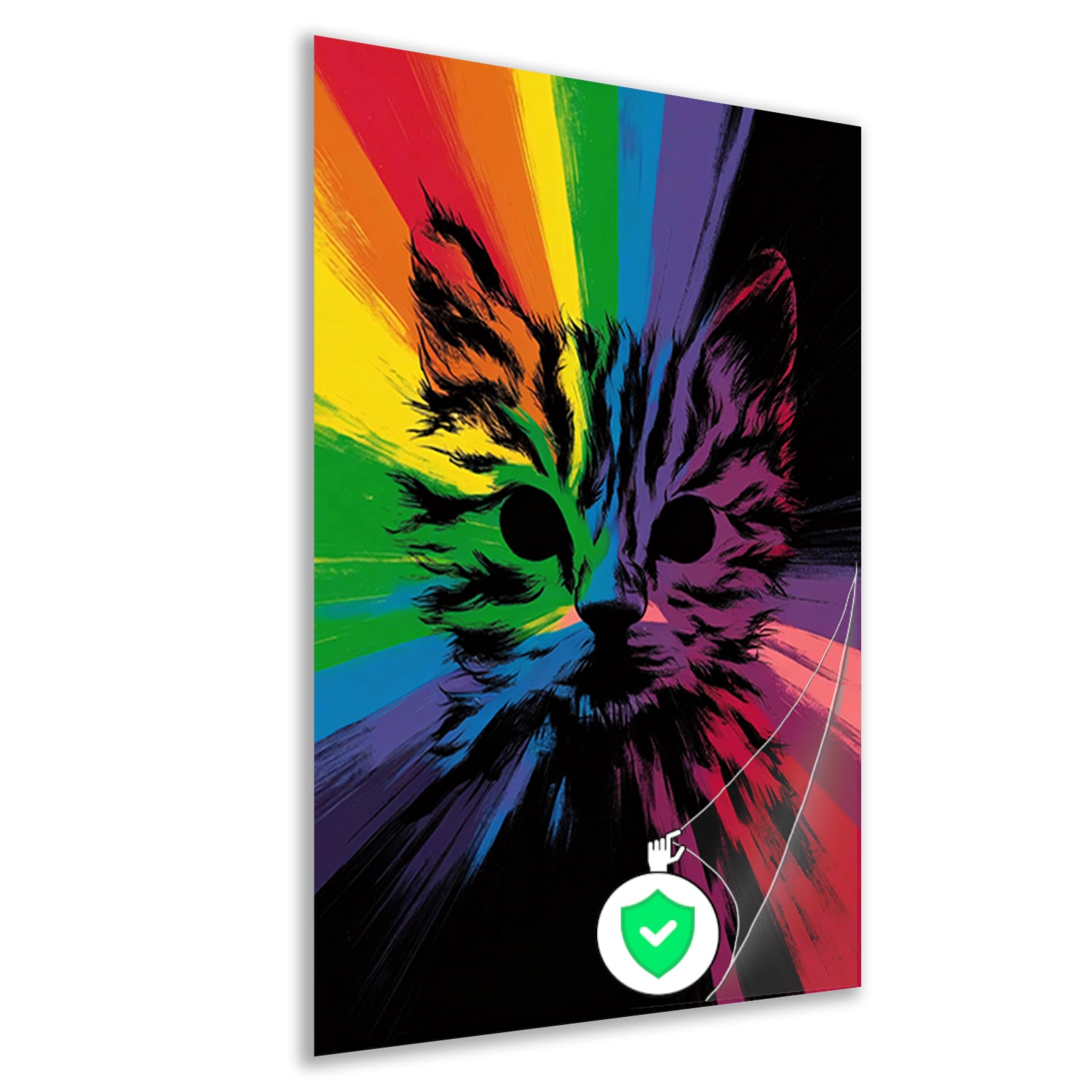 Kleurrijke abstracte kat in regenboogkleuren poster