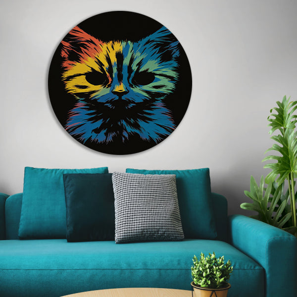 Kleurrijke Abstracte Kat Kunst Print aluminium muurcirkel