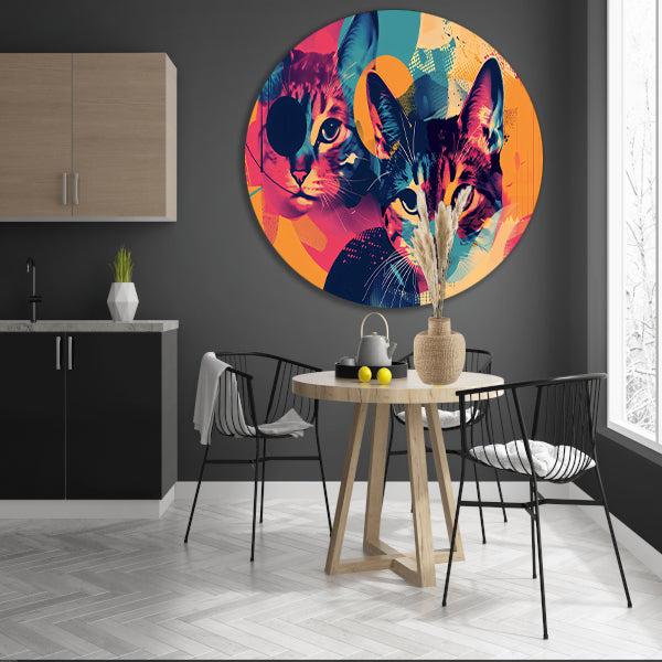 Kleurrijke abstracte katten in geometrische vormen aluminium muurcirkel