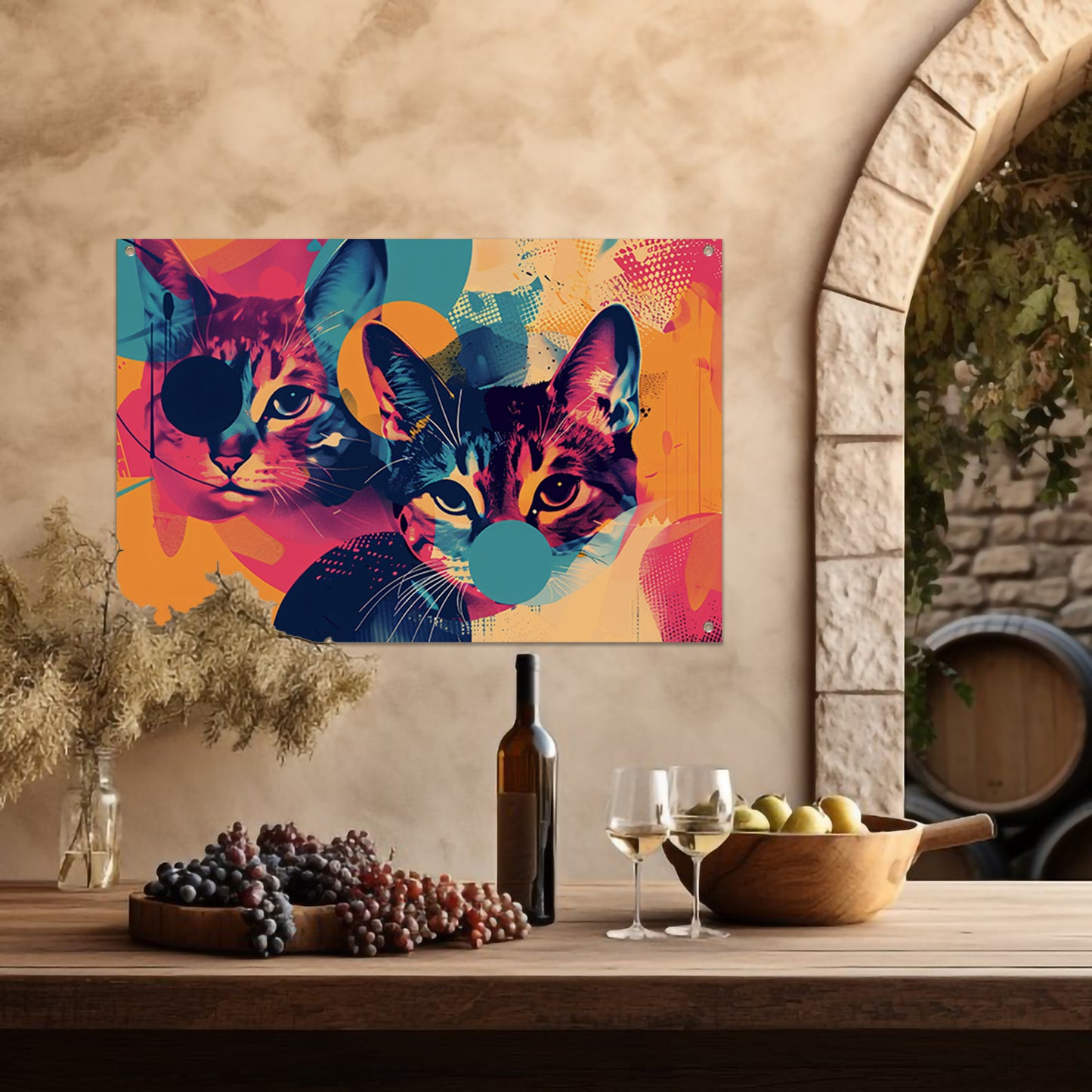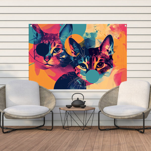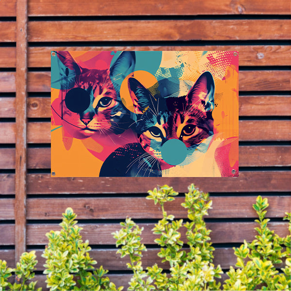 Kleurrijke abstracte katten in geometrische vormen tuinposter