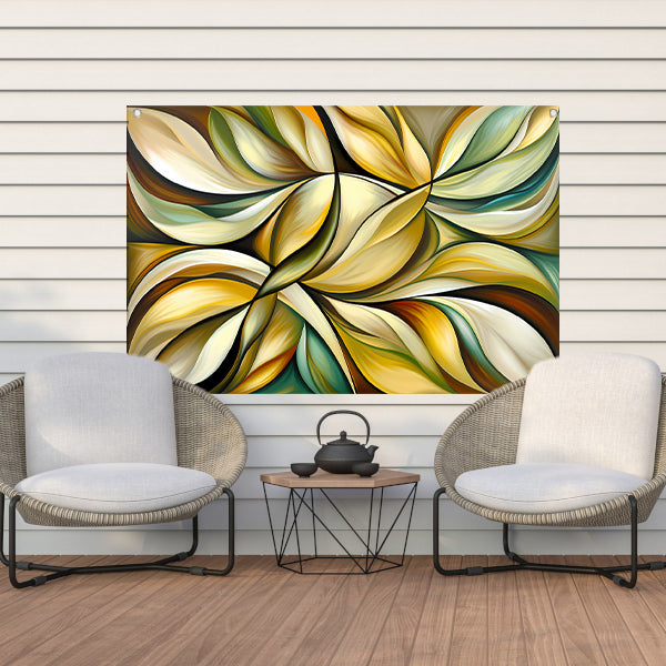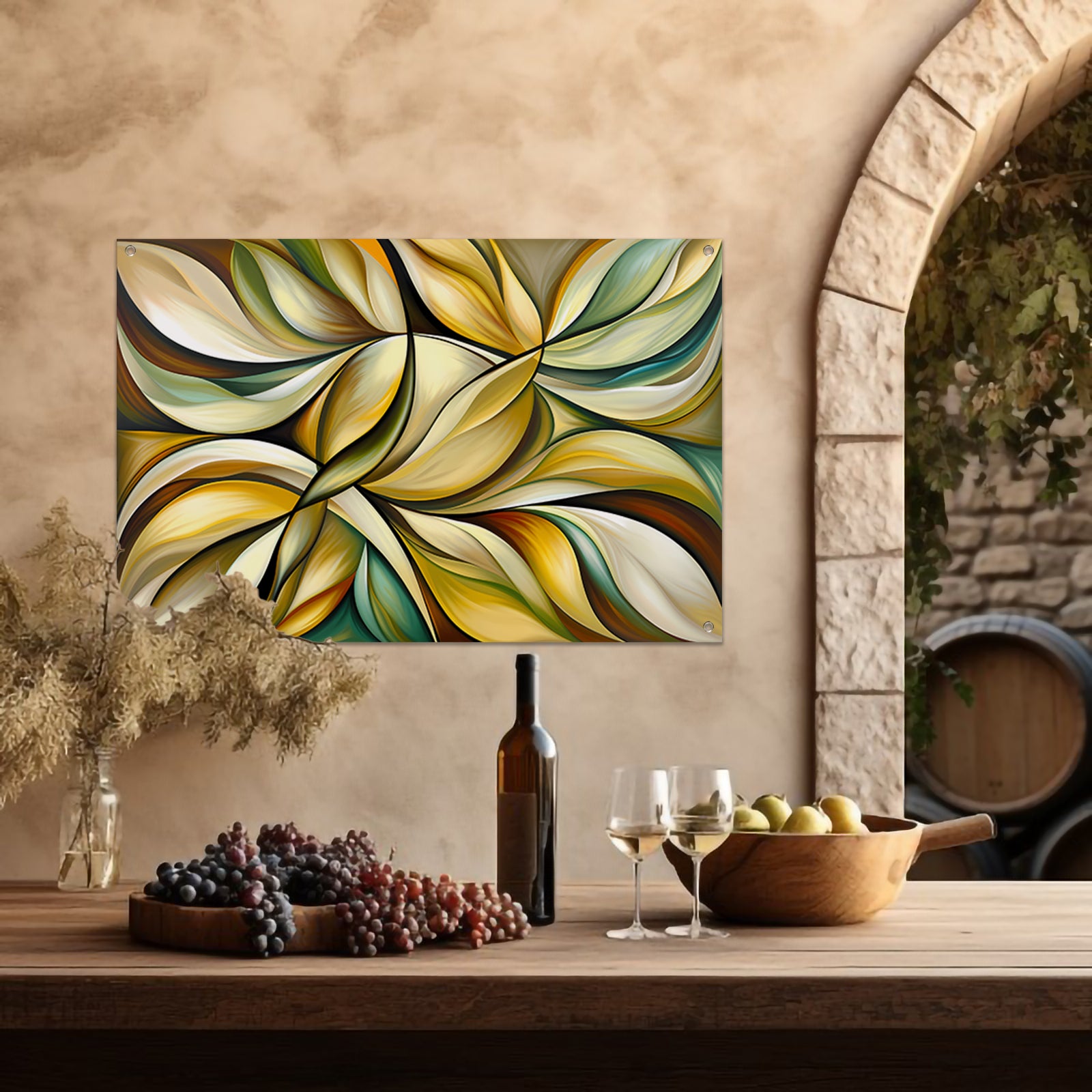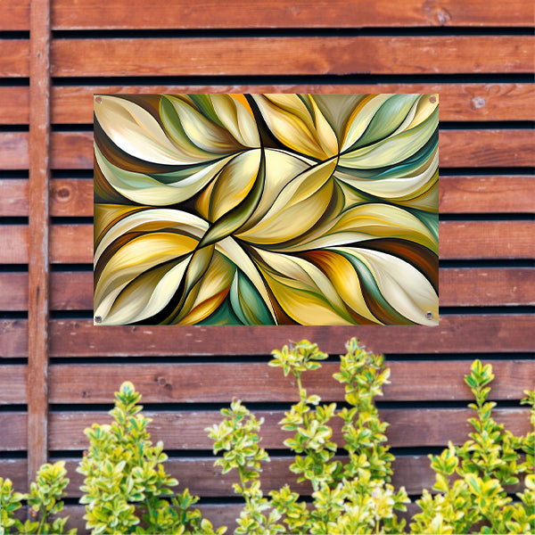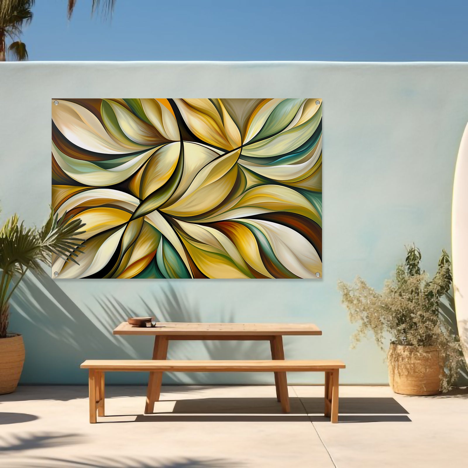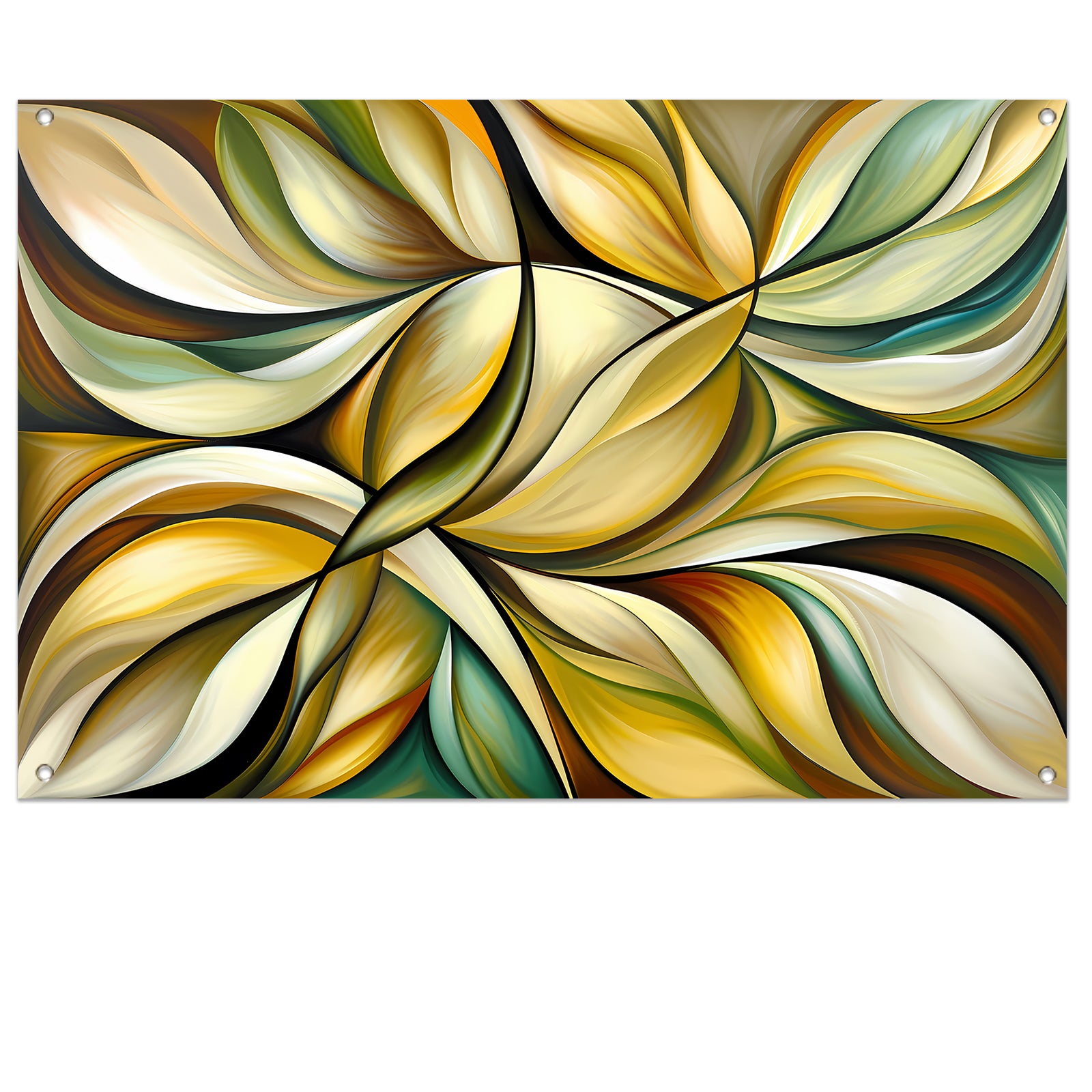 Kleurrijke abstracte kunst met bladeren en vormen tuinposter