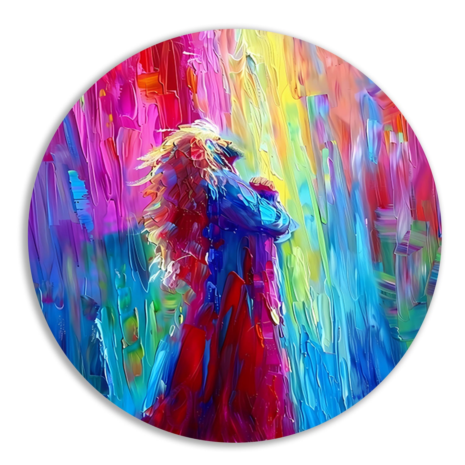 Kleurrijke abstracte papegaai in levendige tinten aluminium muurcirkel