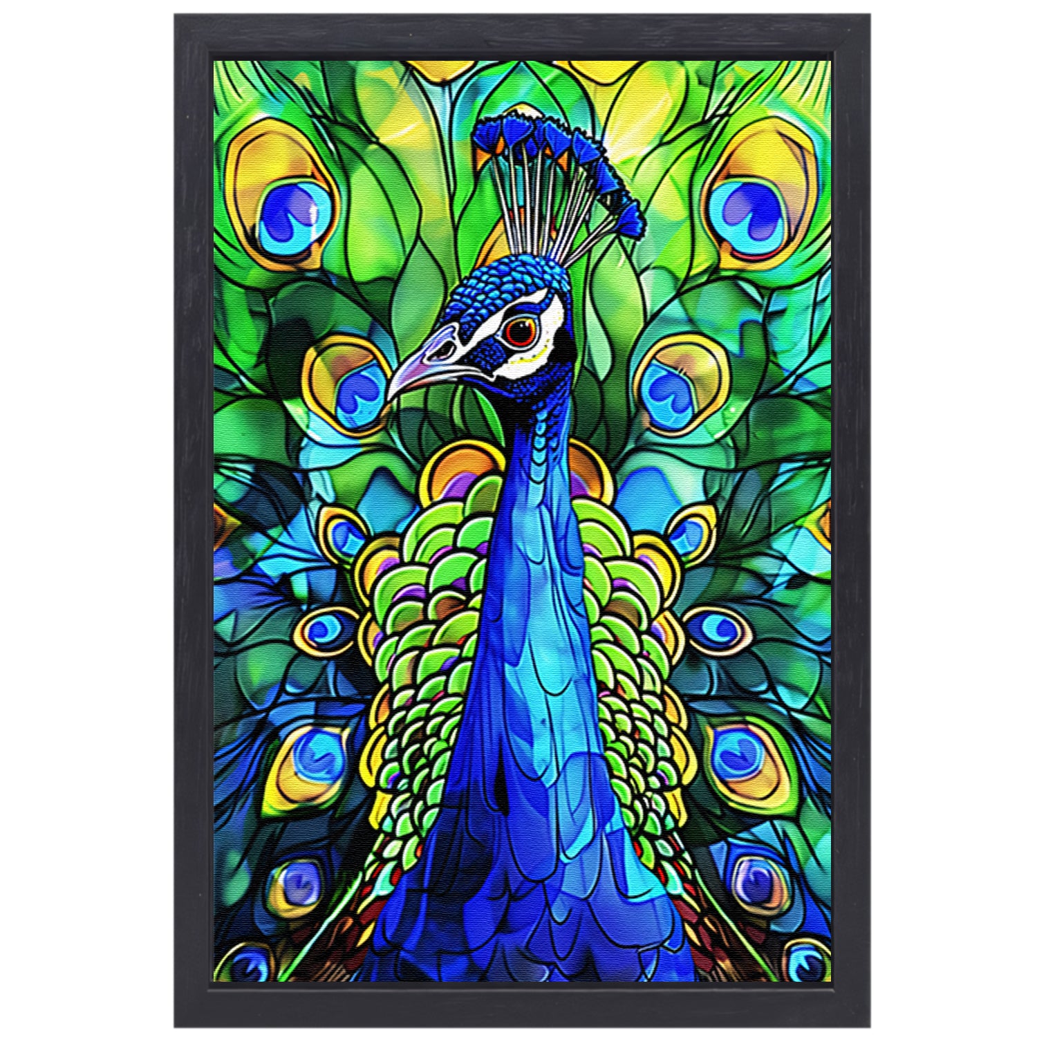 Kleurrijke abstracte pauw met veren canvas met baklijst