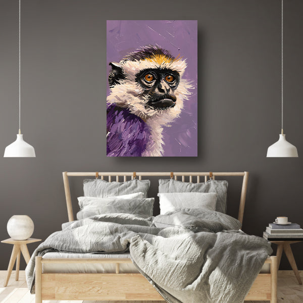Kleurrijke abstracte pop-art schilderij van aap canvas met baklijst