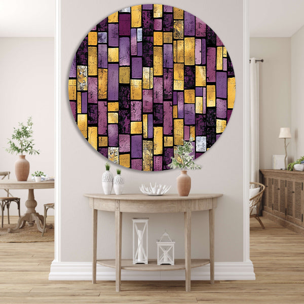 Breng wat kleur en stijl in uw interieur met deze prachtige kleurrijke abstracte rechthoekige patronen aluminium muurcirkel. Versier uw ruimte op een unieke en moderne manier met dit prachtige kunstwerk.