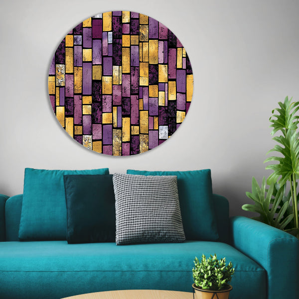 Kleurrijke abstracte rechthoekige patronen aluminium muurcirkel