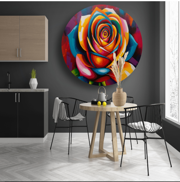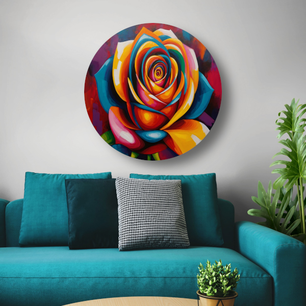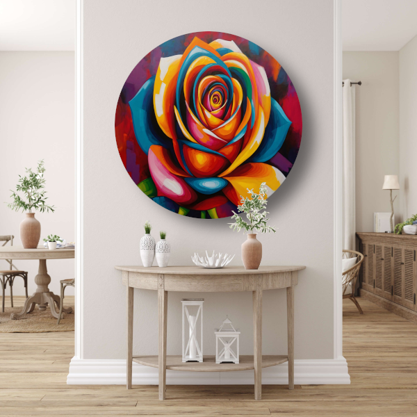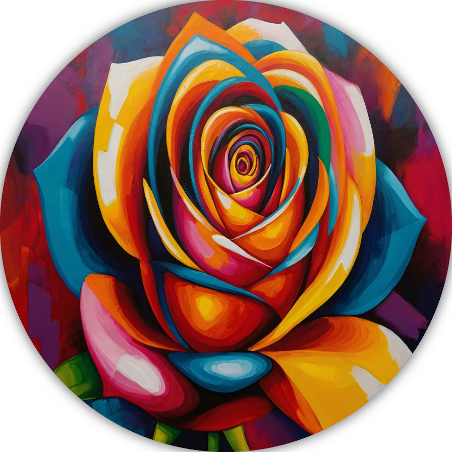 Kleurrijke Abstracte Roos in Levendige Tinten aluminium muurcirkel