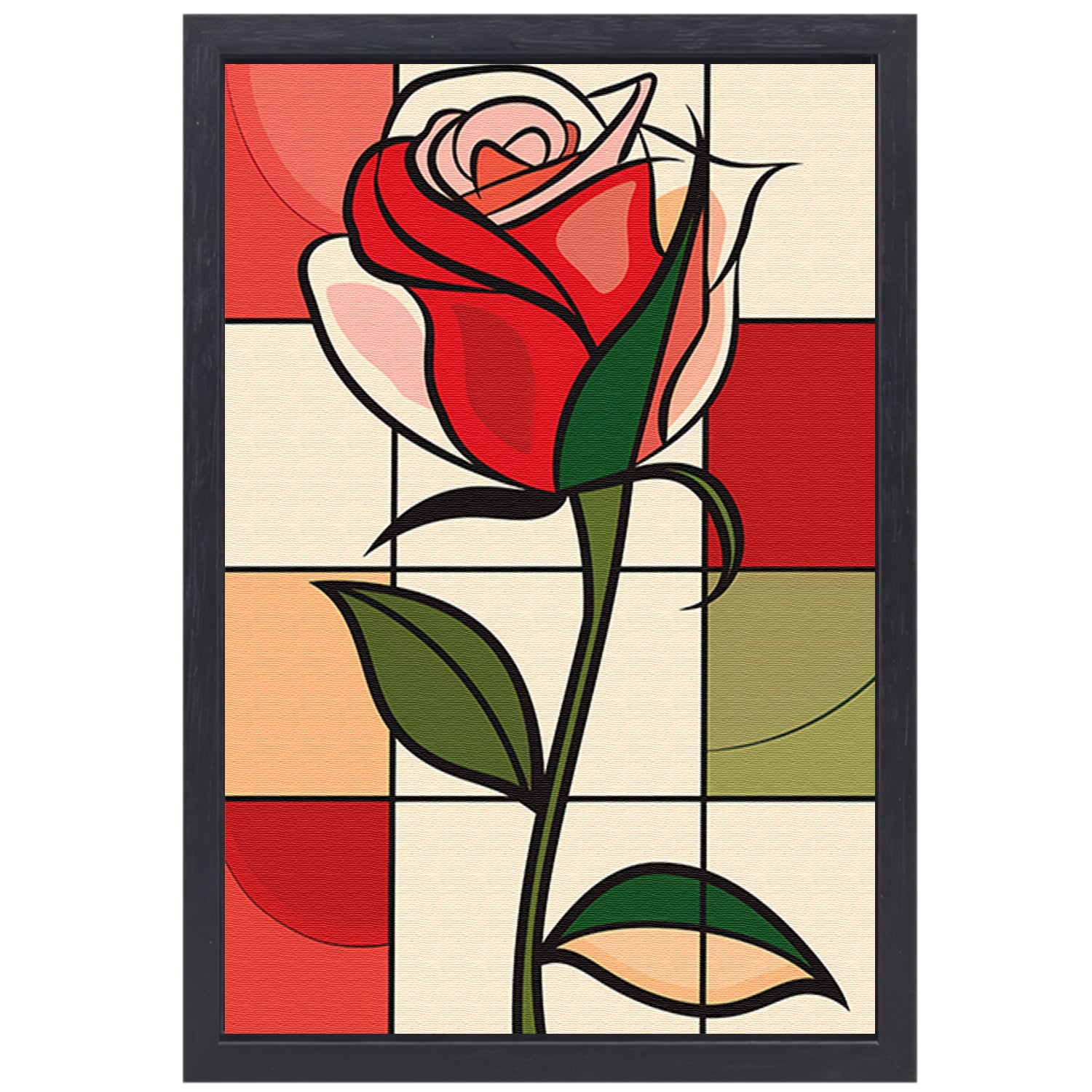 Kleurrijke abstracte roos kunstprint canvas met baklijst