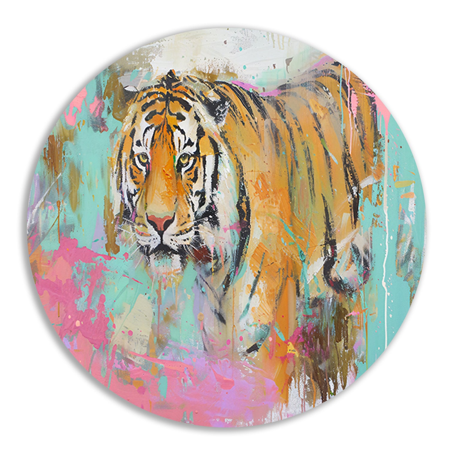 Kleurrijke abstracte schilderij van tijger aluminium muurcirkel