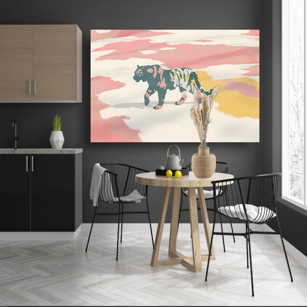 Kleurrijke abstracte tijger schilderij in popart-stijl canvas met baklijst