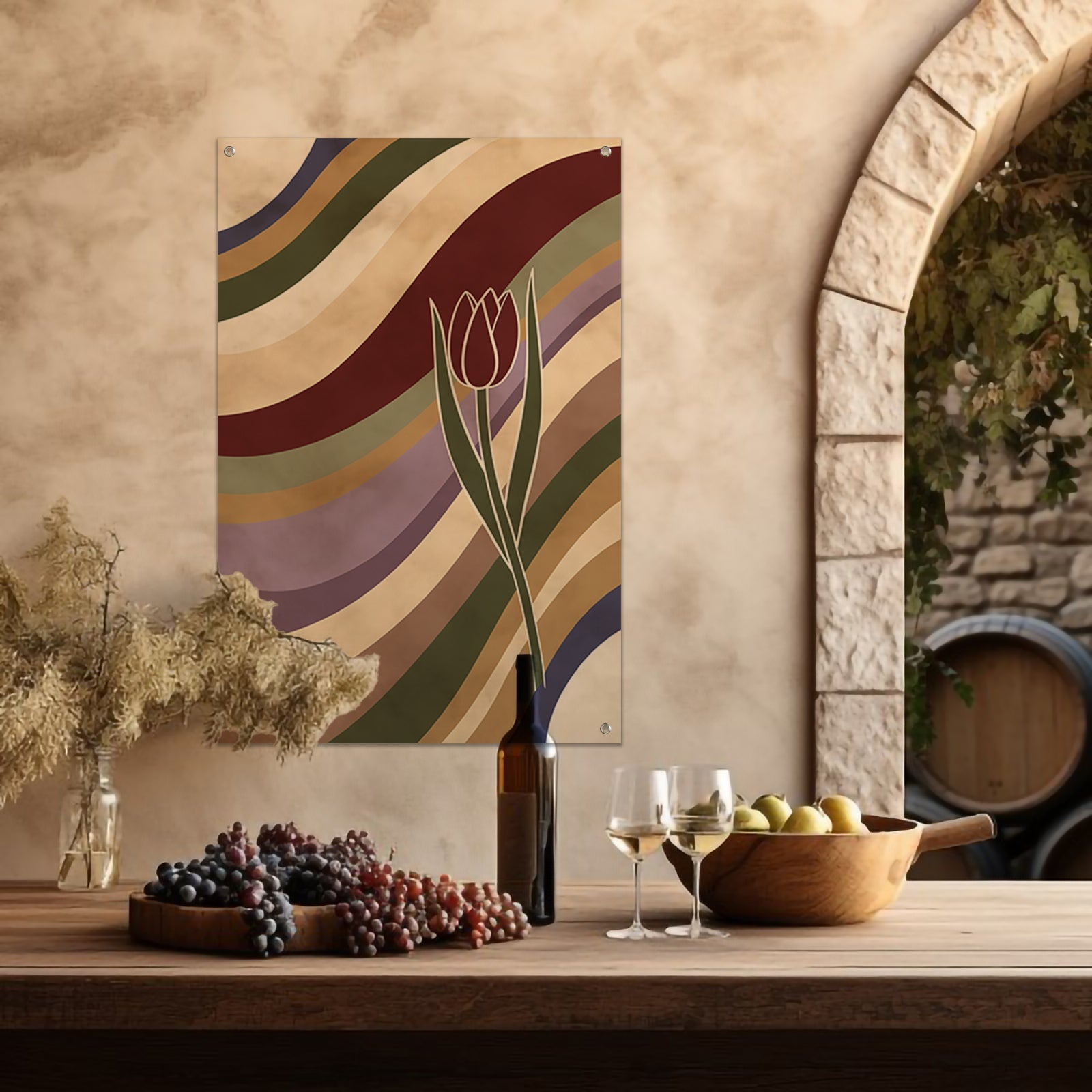 Kleurrijke abstracte tulp met golvende lijnen tuinposter