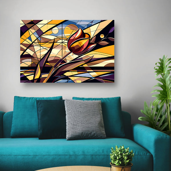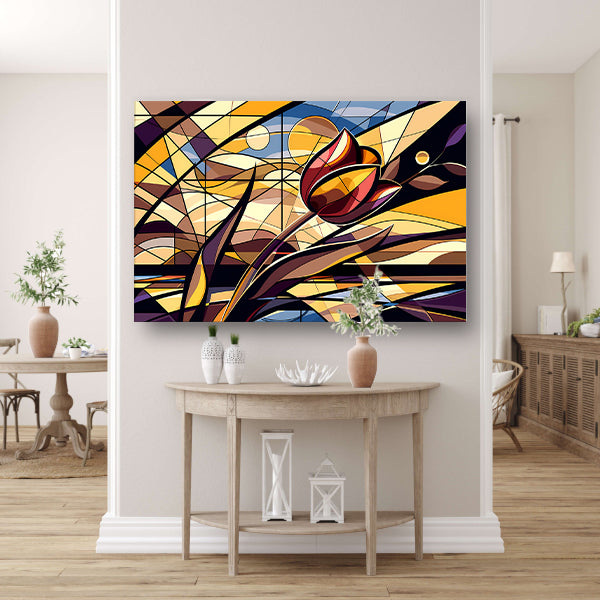 Kleurrijke abstracte tulpenkunst in kubistische stijl acrylglas