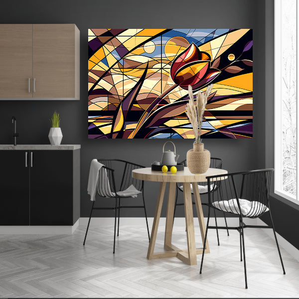 Kleurrijke abstracte tulpenkunst in kubistische stijl canvas met baklijst