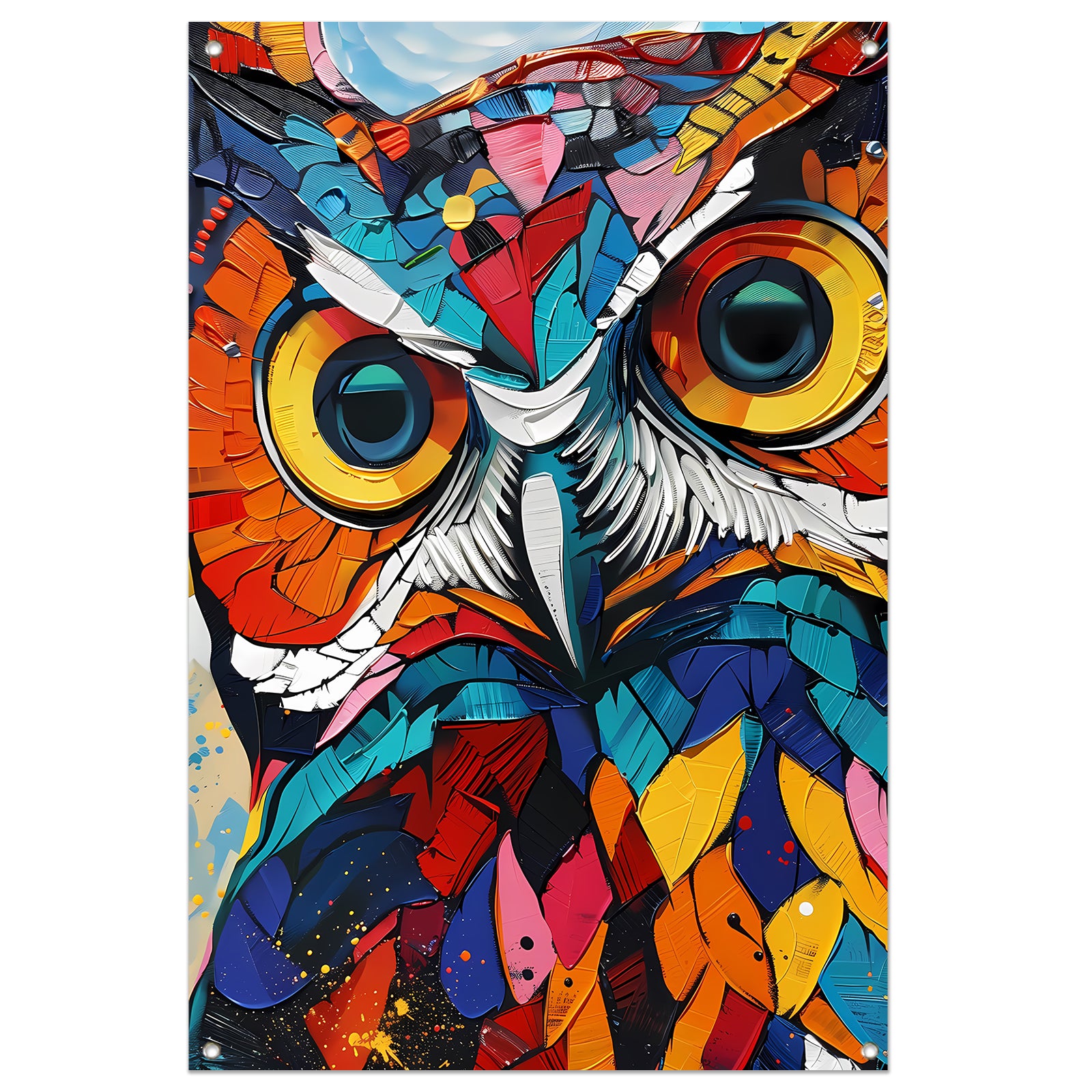Kleurrijke abstracte uil in Popart-stijl tuinposter