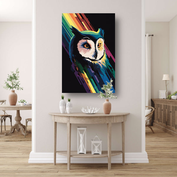 Kleurrijke abstracte uil kunst print canvas met baklijst