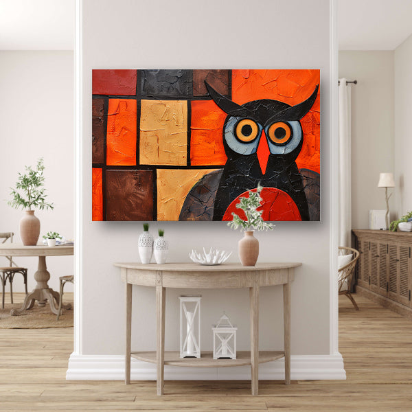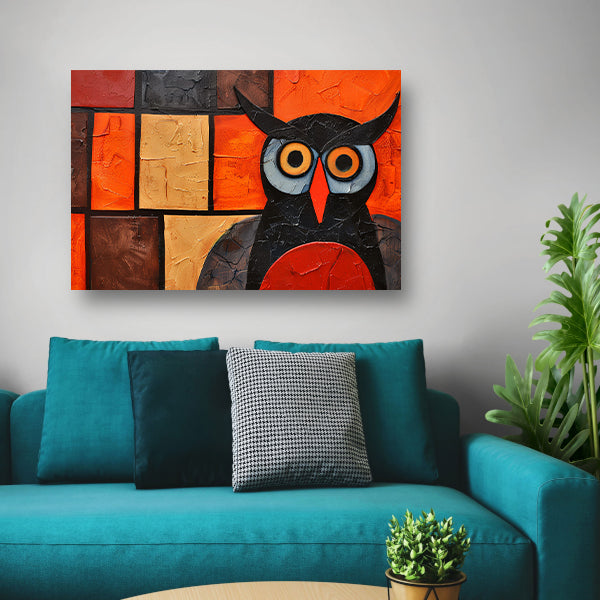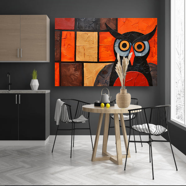 Kleurrijke abstracte uil schilderij op canvas acrylglas
