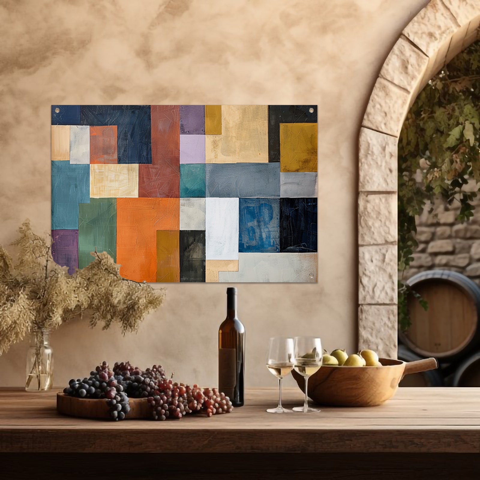 Kleurrijke abstracte vlakken met lijnen tuinposter