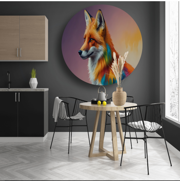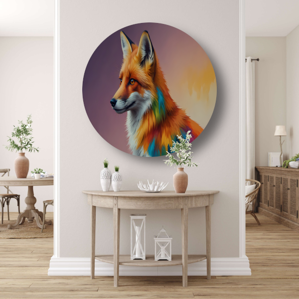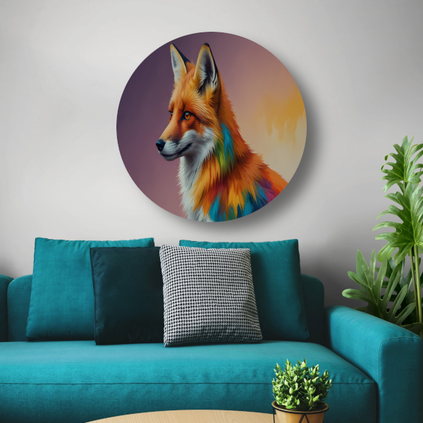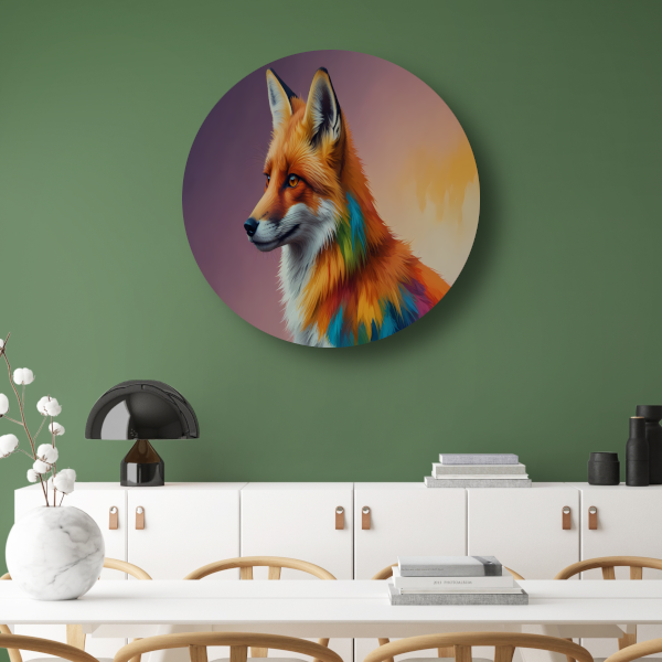 Kleurrijke Abstracte Vos in Moderne Kunst aluminium muurcirkel