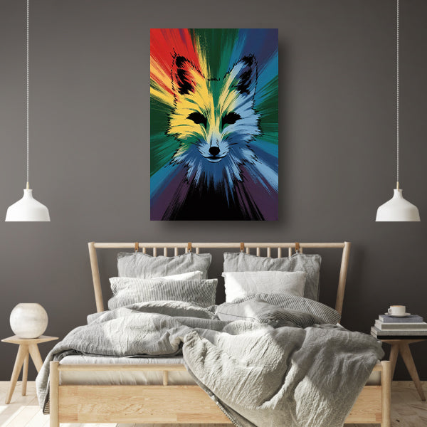 Kleurrijke abstracte vossenkop op canvas acrylglas