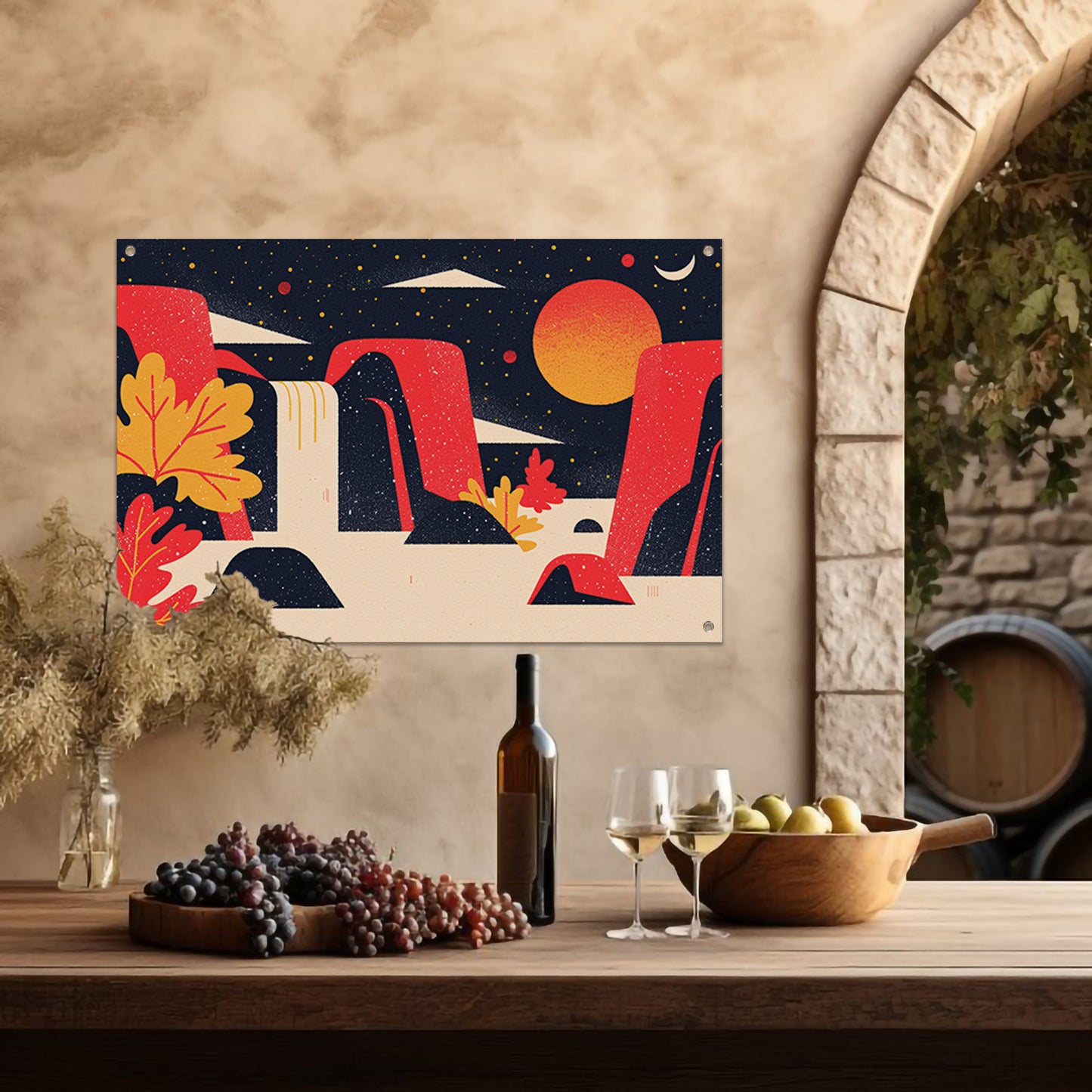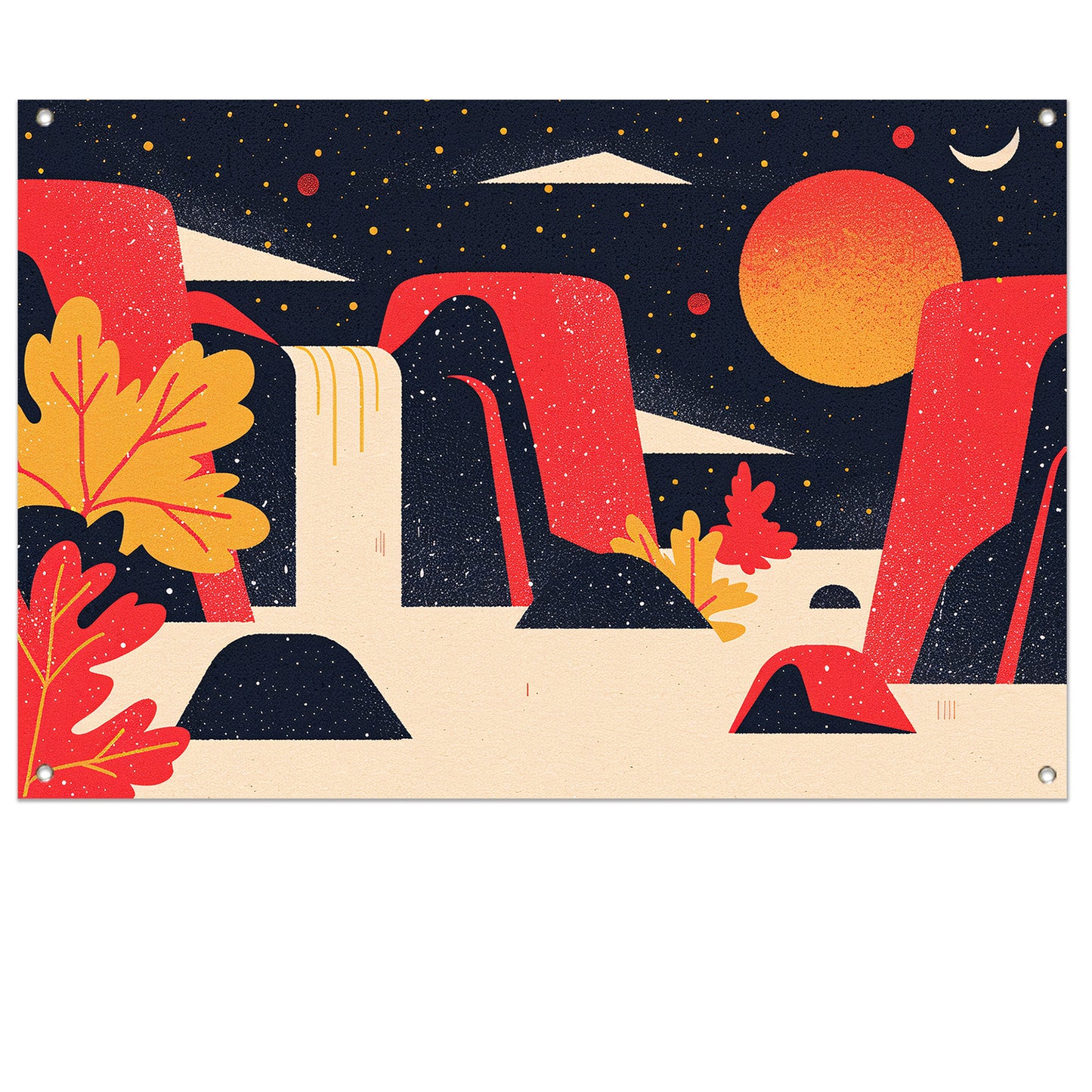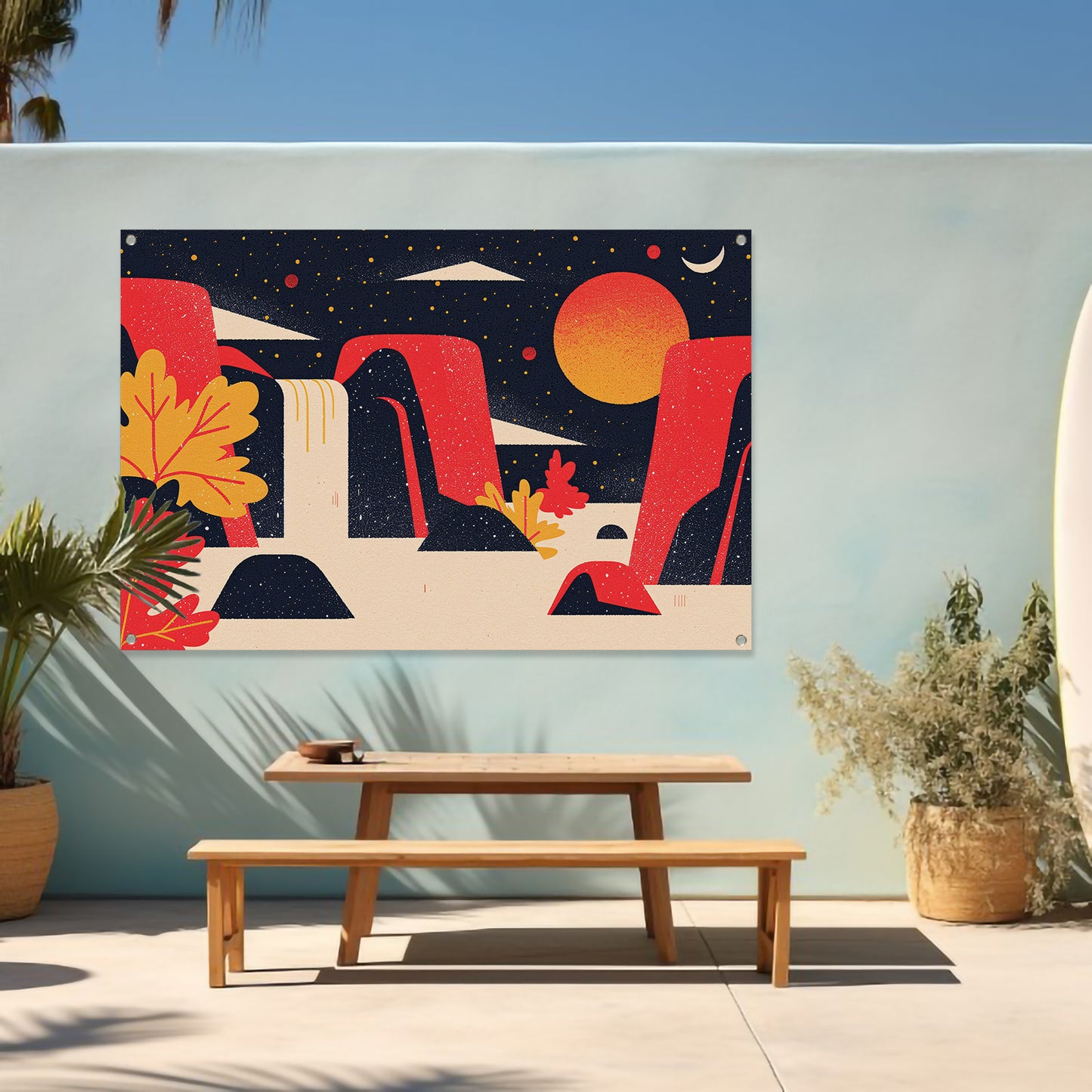 Kleurrijke abstracte waterval met rotsen tuinposter