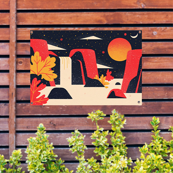 Onze tuinposters zijn UV- en waterbestendig, waardoor ze bestand zijn tegen zon en regen en hun kleuren langdurig mooi blijven. Alle tuinposters van De Muurdecoratie zijn voorzien van ringen in de hoeken, zodat je ze eenvoudig kunt ophangen. Let op: onze tuinposters worden niet met ophangsysteem geleverd.