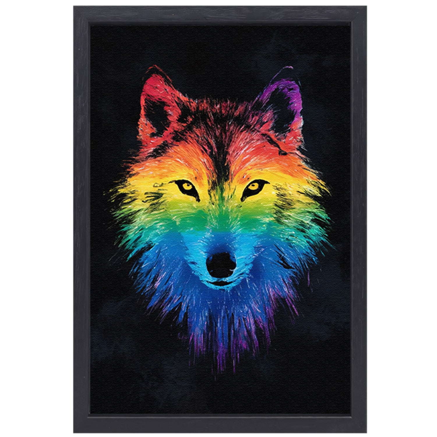 Kleurrijke abstracte wolf illustratie voor interieur canvas met baklijst