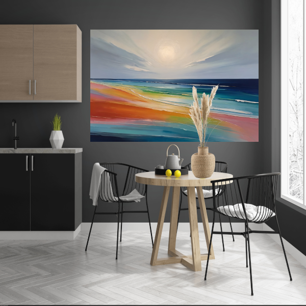 Verkrijgbaar in diverse formaten, past dit stuk perfect in elk interieur. Voeg een vleugje kleur en creativiteit toe aan je woonruimte met deze prachtige abstracte zonsondergang op acrylglas. Een uniek en origineel kunstwerk dat de aandacht zal trekken en een echte eyecatcher zal zijn in je huis.