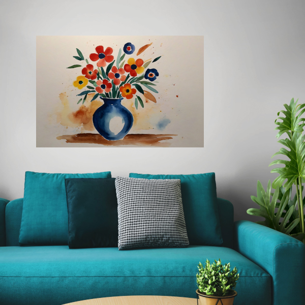 Kleurrijke aquarel van bloemen in vaas acrylglas