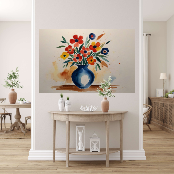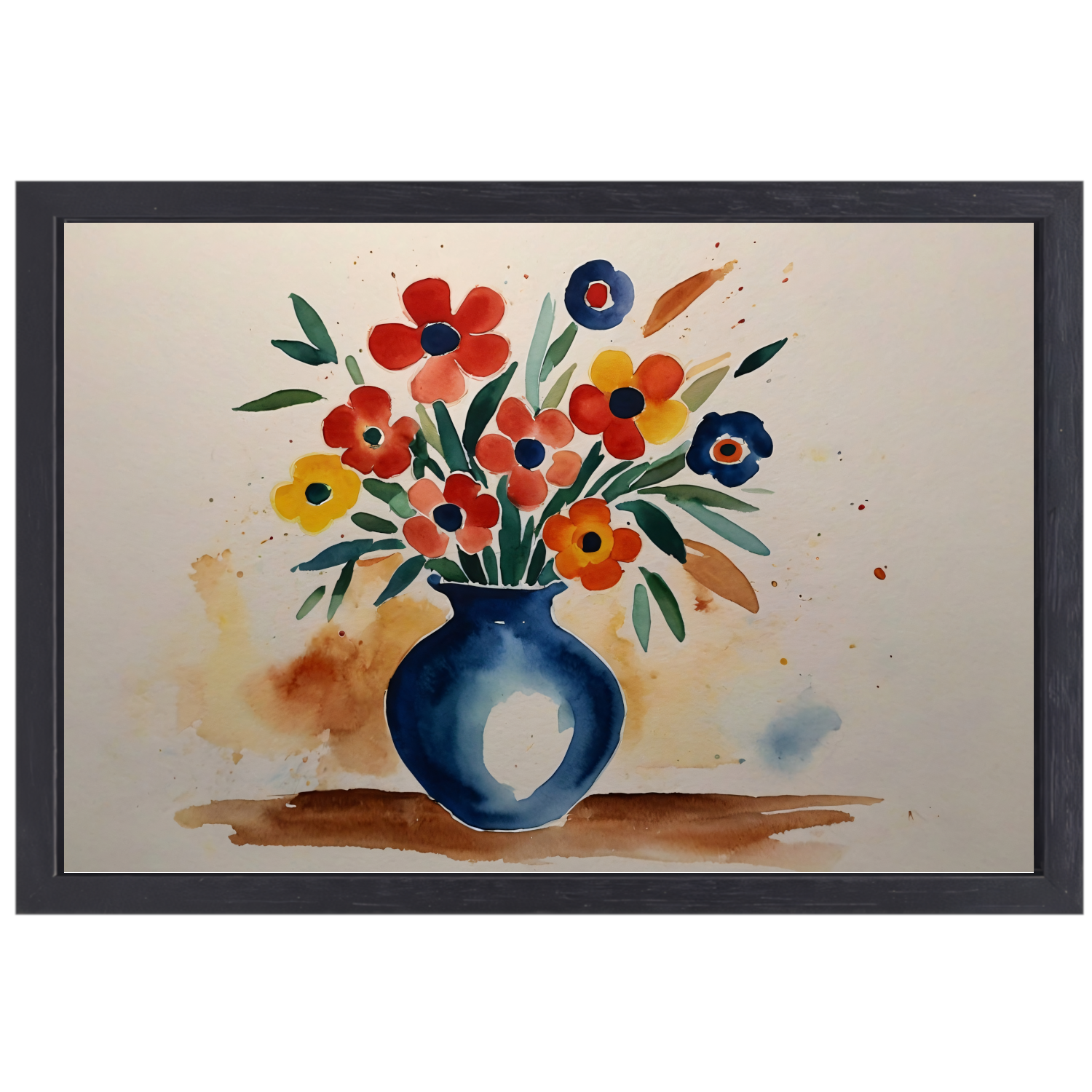Kleurrijke aquarel van bloemen in vaas canvas met baklijst