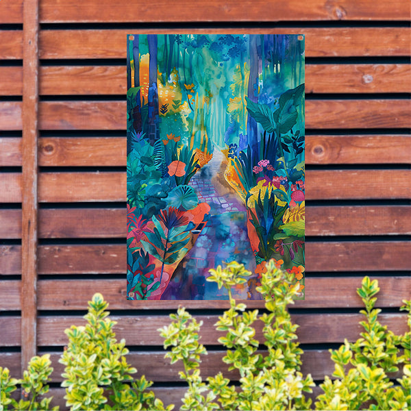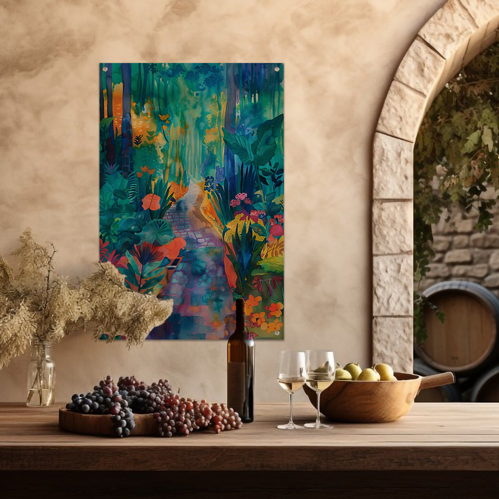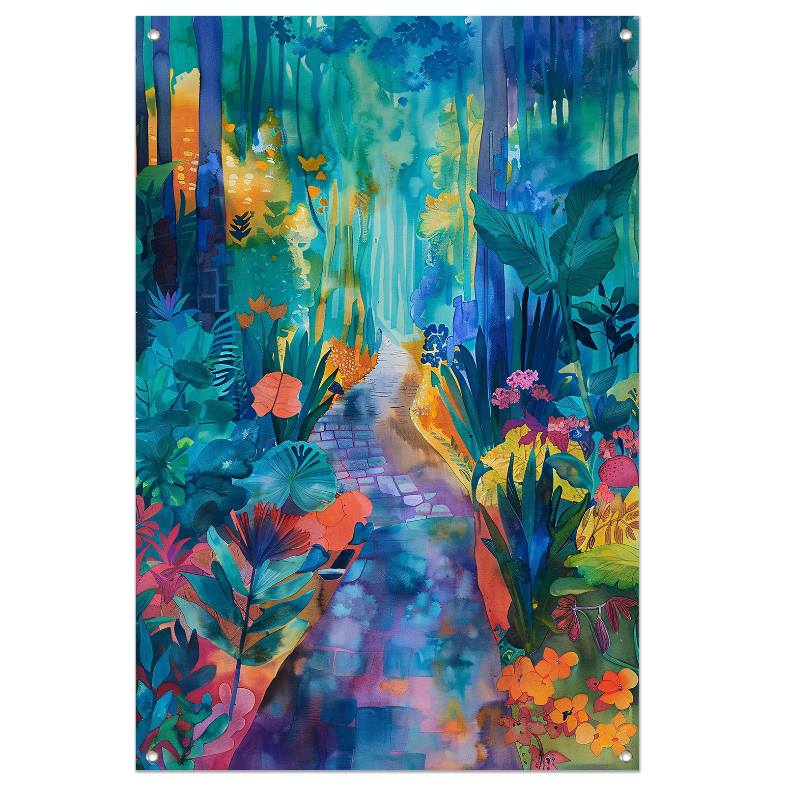 Onze tuinposters zijn UV- en waterbestendig, waardoor ze bestand zijn tegen zon en regen en hun kleuren langdurig mooi blijven. Alle tuinposters van De Muurdecoratie zijn voorzien van ringen in de hoeken, zodat je ze eenvoudig kunt ophangen. Let op: onze tuinposters worden niet met ophangsysteem geleverd.