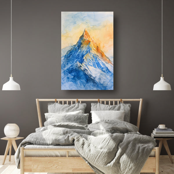 Kleurrijke aquarel van majestueuze bergtop acrylglas