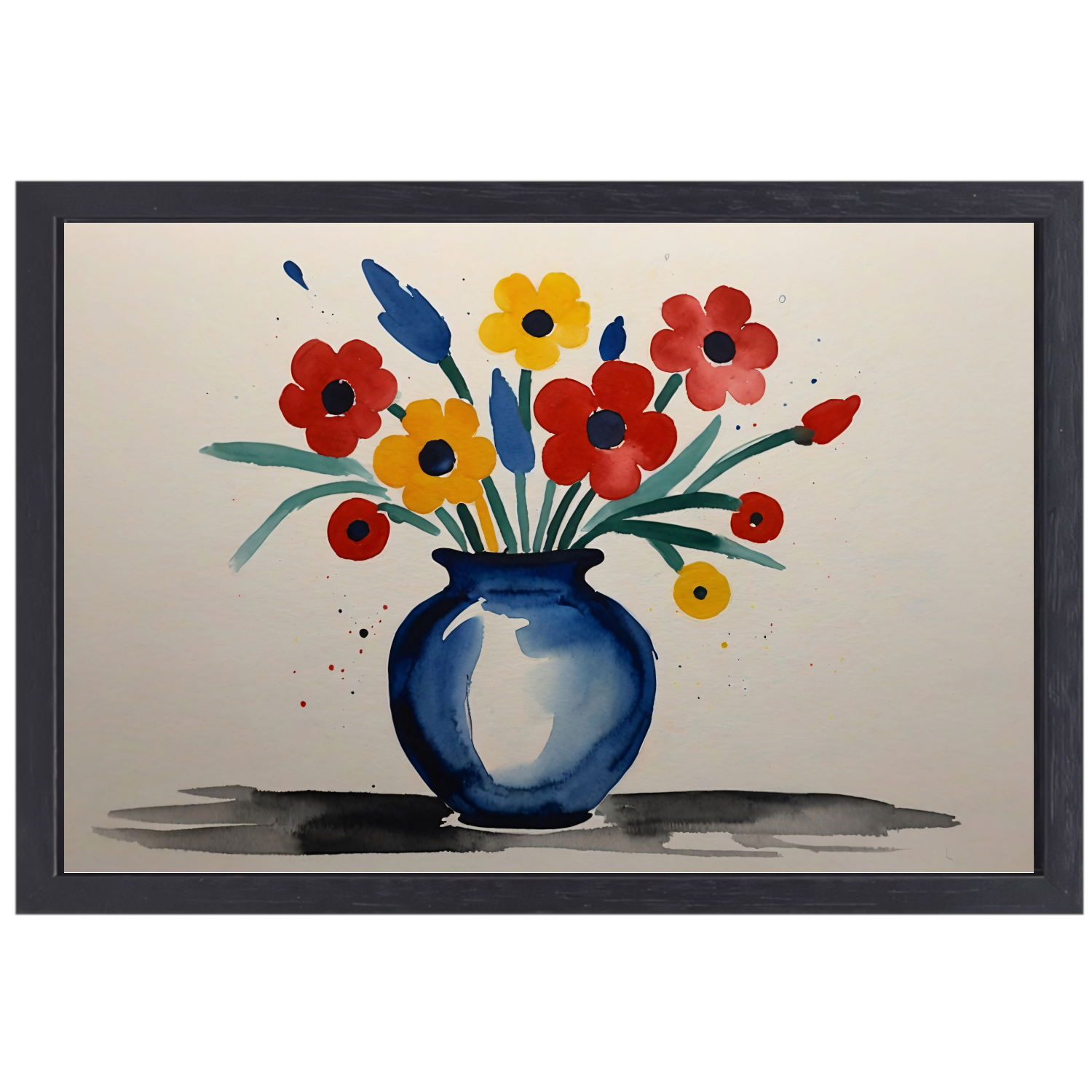 Kleurrijke Aquarel van Vaas met Bloemen canvas met baklijst