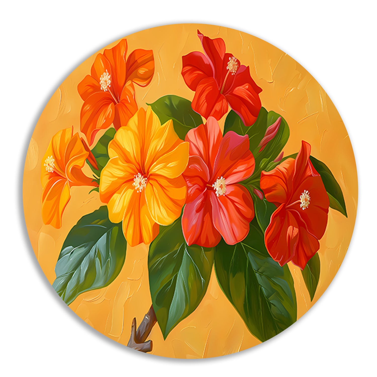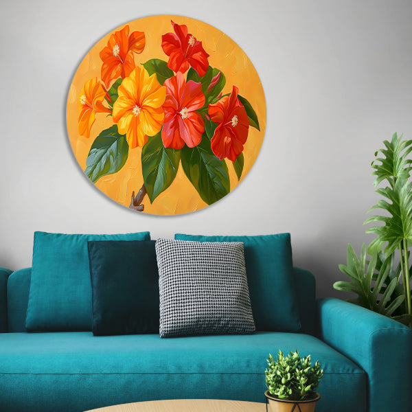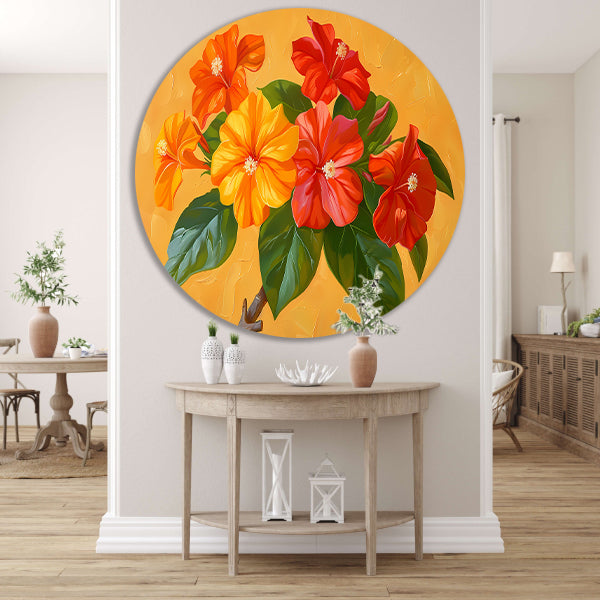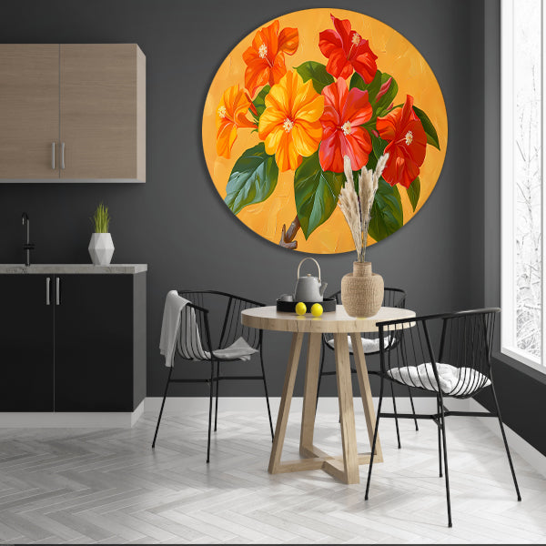Kleurrijke bloemen en bladeren schilderij forex muurcirkel