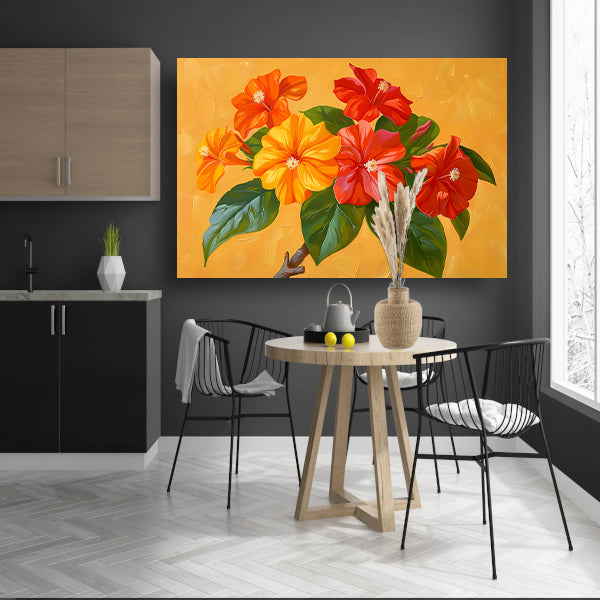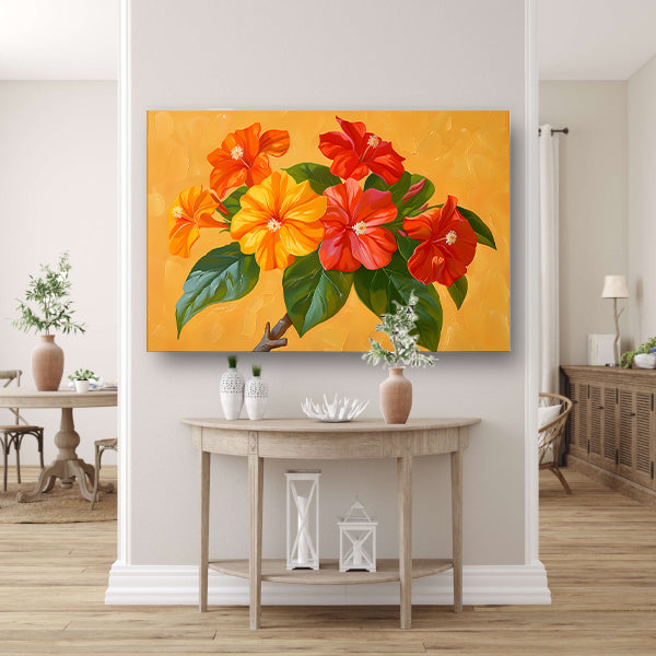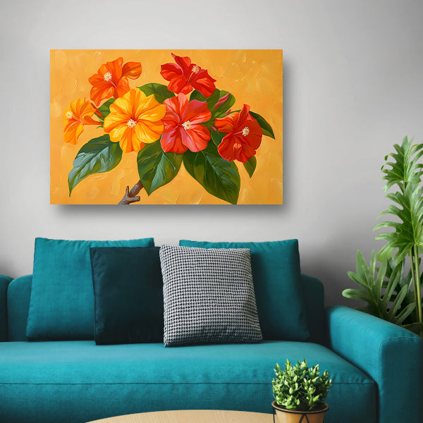 Kleurrijke bloemen en bladeren schilderij poster