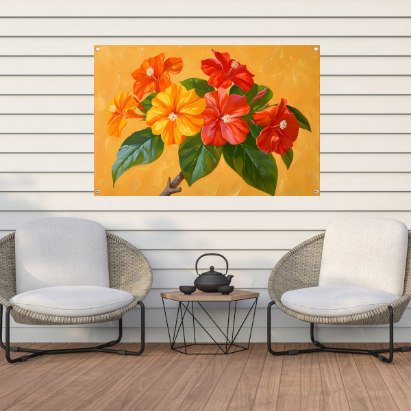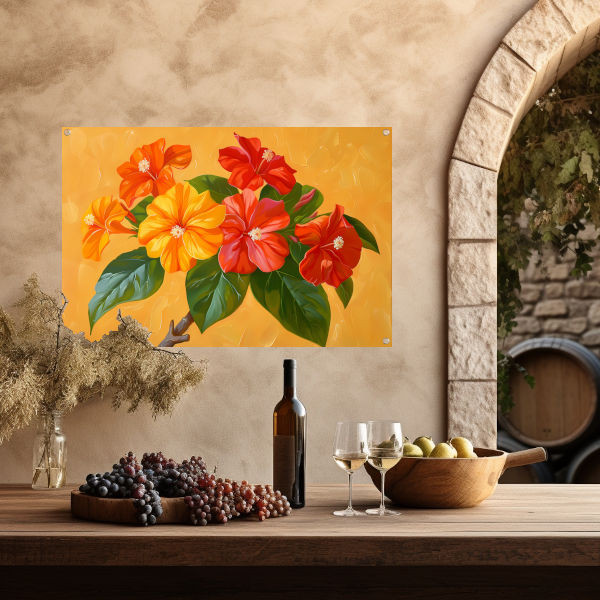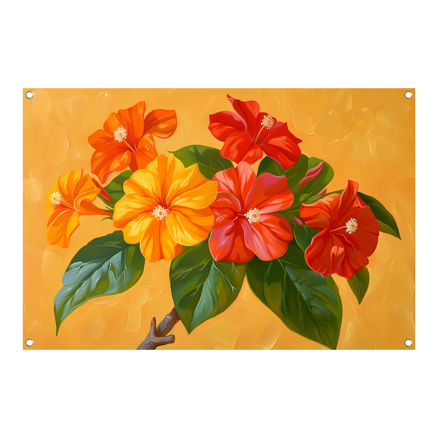 Kleurrijke bloemen en bladeren schilderij tuinposter