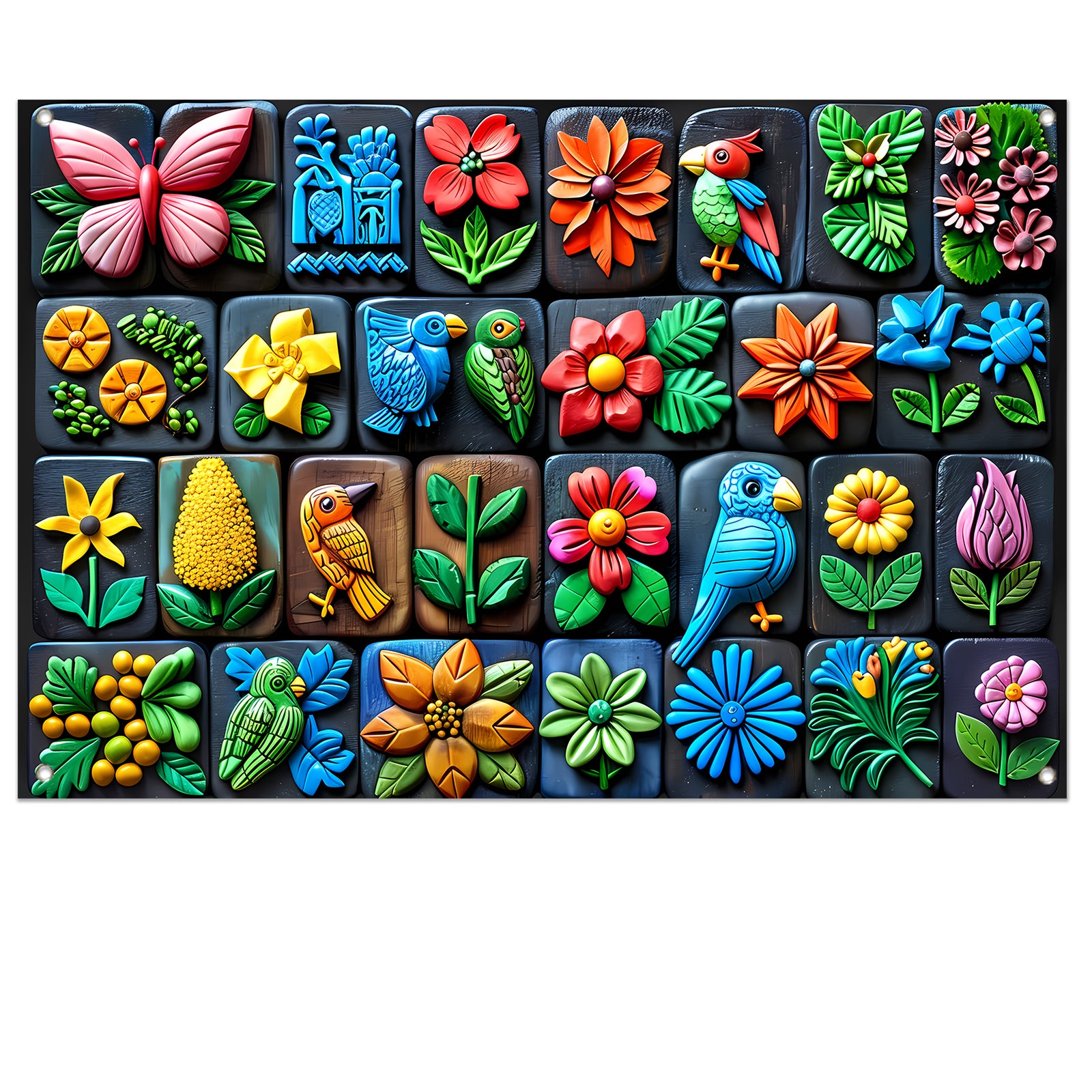 Kleurrijke Bloemen en Vogels in Kunstvorm tuinposter