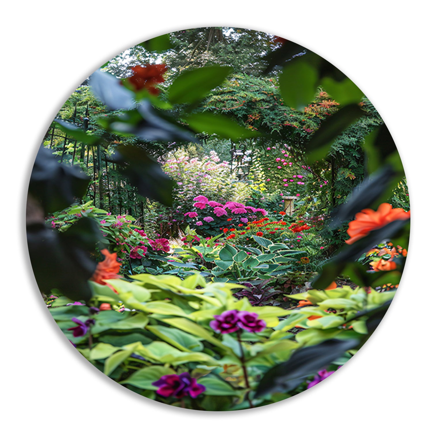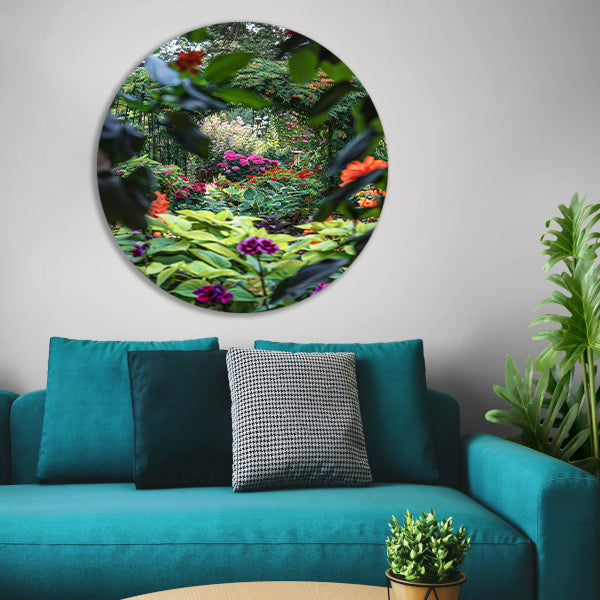Kleurrijke bloemenpracht in de tuin aluminium muurcirkel