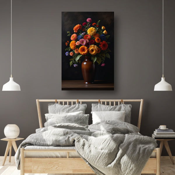 Kleurrijke Bloemenpracht in Donkere Vaas poster