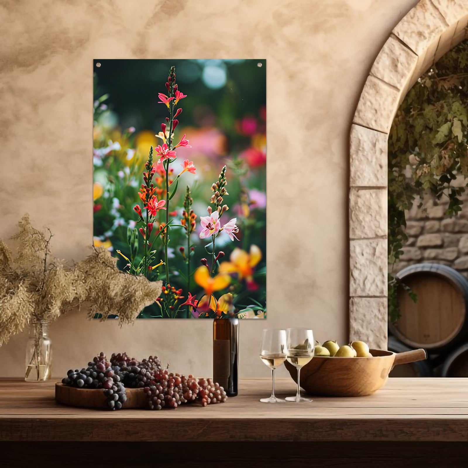 Onze tuinposters zijn UV- en waterbestendig, waardoor ze bestand zijn tegen zon en regen en hun kleuren langdurig mooi blijven. Alle tuinposters van De Muurdecoratie zijn voorzien van ringen in de hoeken, zodat je ze eenvoudig kunt ophangen. Let op: onze tuinposters worden niet met ophangsysteem geleverd.