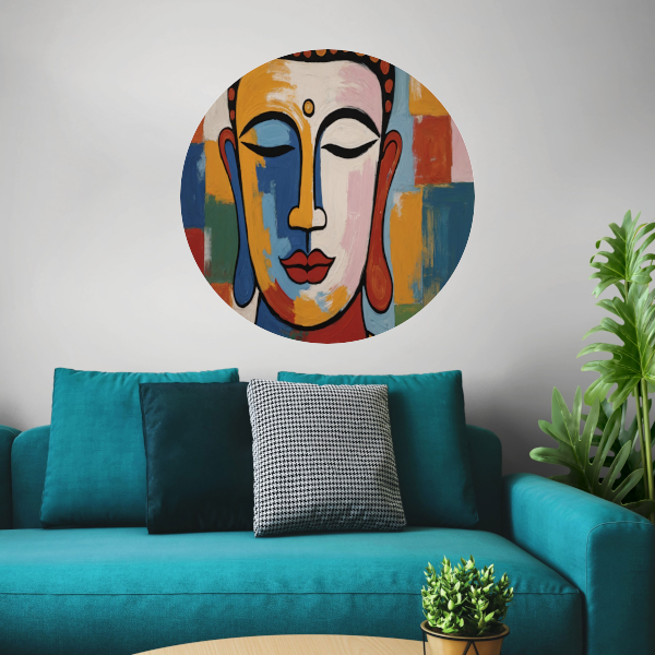 Kleurrijke Boeddha van Sereniteit en Wijsheid aluminium muurcirkel